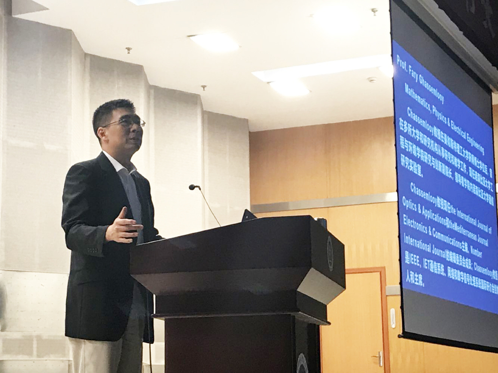 此次年度联合学术讲座采用线上线下混合形式。线上部分邀请诺森比亚大学工程与环境学院(研究与创新)副院长Ghassemlooy教授作了“The World of Visible Light Communications”的学术报告,报告从可见光通信的原理、优势、应用场景等方面,介绍了可见光在通信方面的运用。线下部分由余健教授主讲,余教授结合自身发展的经历,做了题为“What to Expect from Sino-UK Educational Experience”讲座,鼓励学生从自问“我要想做什么”开始,思考如何规划学业,明确目标,为今后的发展做好准备。