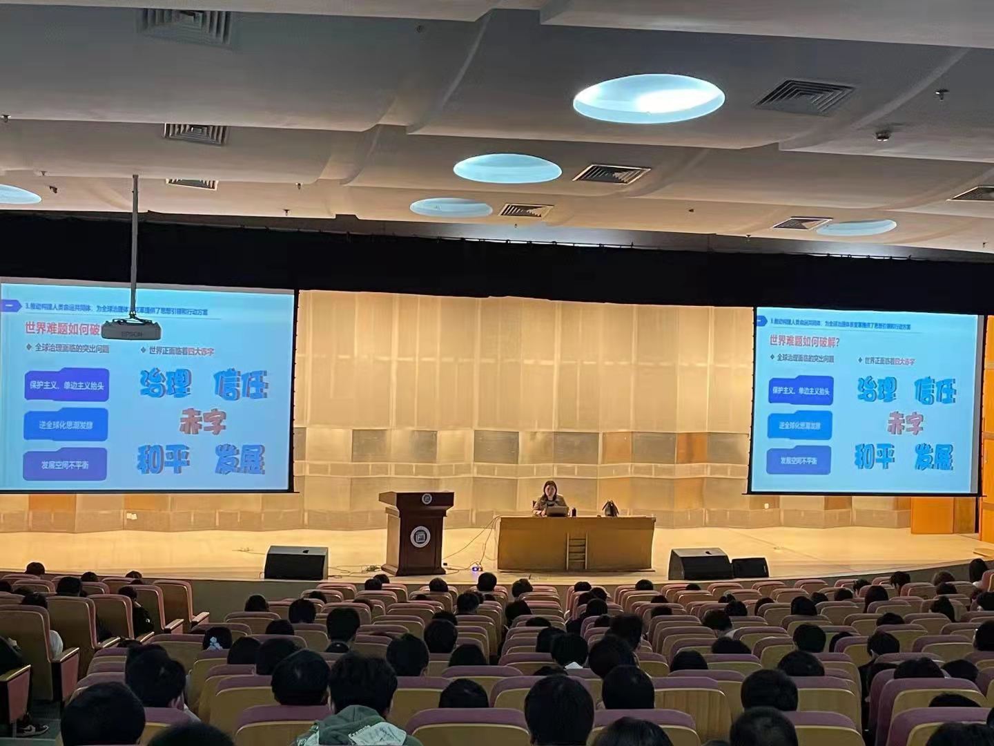 李教授从伟大构想应时顺势、鲜明旗帜、广泛认同,中国行动彰显担当、命运与共、前景可期等方面展开阐述。她介绍我国通过多层次、多领域作出了努力,抗疫实践和国际合作使人类命运共同体理念更加深入人心,中外抗疫外交更是推动构建人类命运共同体的生动实践。李教授的讲座在热烈的掌声中结束。