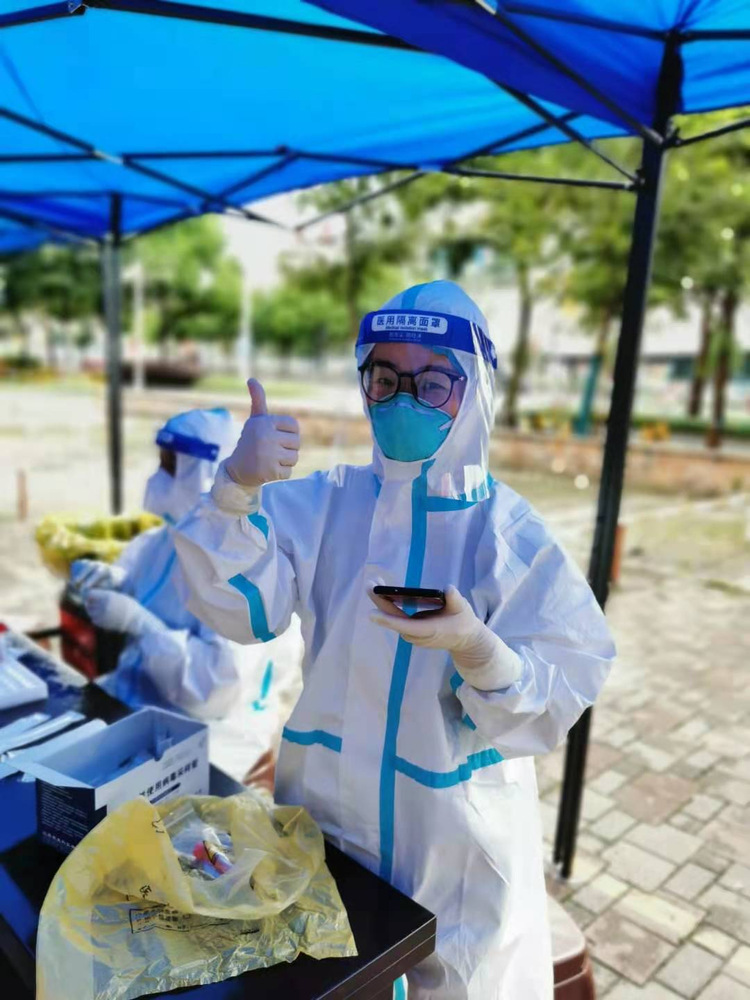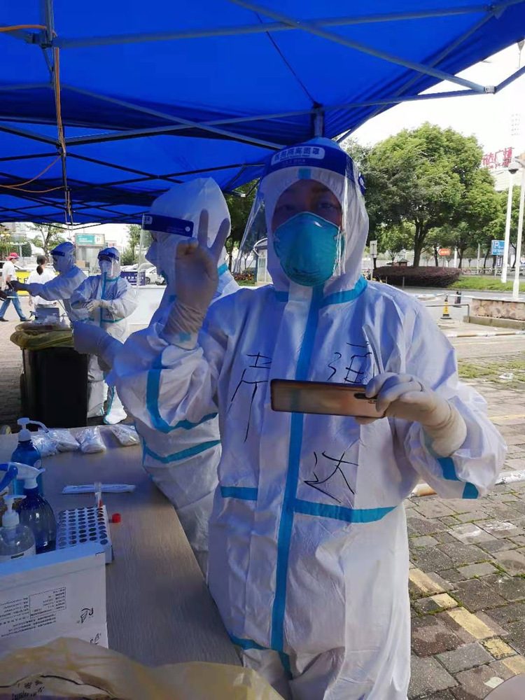 作为一名教师党员,我第一时间向学院提交志愿者申请,尽自己微薄的力量去抗击疫情。我的主要工作是在社区核酸监测点为进出的居民进行登记和引导、配合医生扫描身份证采集信息等。这些工作看起来简单实则工序烦琐,在三十几度的高温环境里穿着防护服,戴着口罩、面罩、手套,没过一会就大汗淋漓,但是大家没有丝毫退缩。那么多居民,自觉保持一米距离,排着长长的队伍,有被抱着的两三岁小孩、有挺着肚子的孕妇、有头发胡须白花花的老人。居民们非常配合我们的工作,提醒我们注意防护,向我们表达谢意。他们的支持和理解,让我们忘记了汗水,忘记了疲惫,疫情虽然拉远了人与人之间的接触距离,但彼此间的关怀没有减退。坚信经过大家的不懈努力,一定能经受住考验,夺取抗疫的最终胜利!