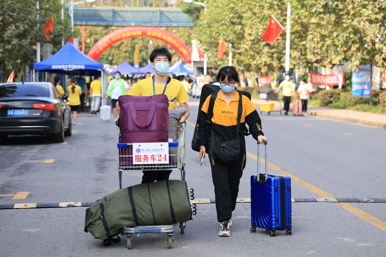 “学”途有同伴,家人请放心。报到当日,院领导一行深入走访学院大门报到入口、食堂、宿舍、隔离场所、后勤楼营业网点等重点部位,对一线工作人员表示由衷的感谢和亲切的慰问。在学生报到入口,院领导与刚刚返校的学生亲切交流,详细询问了同学们返校的具体情况及返校后的生活安排,叮嘱他们严格遵守学校疫情防控相关规定,注意做好安全防护。由于疫情防控相关要求,今年新生仍然需要独立完成报到。为方便学生报到,学院有430余名知心学长、知心学姐主动加入新生报到志愿者服务行列,他们身着一身银杏黄,穿梭在校园内外各个接待站点,为新生指引方向、提拿行李、答疑解惑,同时配合学校防疫要求,协助查证、测温、验码,守好校园安全防线。在三轮车、手推车、行李箱轱辘的一声声传动声中,学长学姐的“我来帮你拿行李”、接站阿姨的“行李快放三轮车上来,看你拎我心疼”、“把空调打开,别热着了”等暖心的话语都应该让你们倍感温暖,请相信全体通达人定将竭尽全力伴你成长成才。