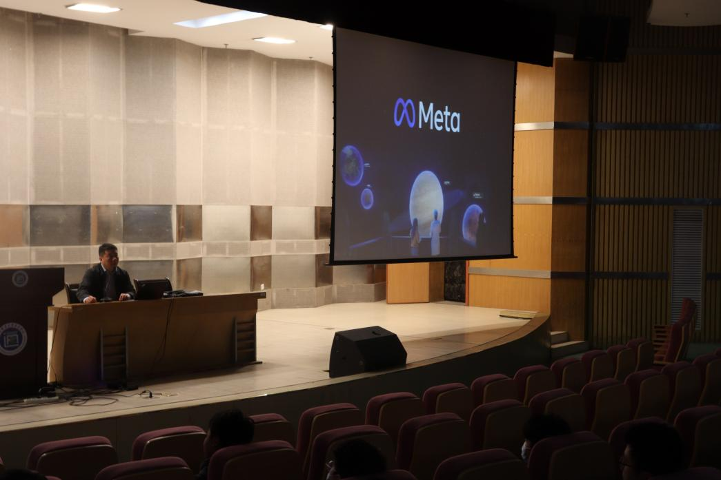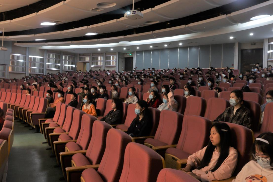 臧庆老师着重为同学们介绍大学阶段的英语学习规划。臧老师首先从脸书公司改名为Meta这一热点问题引入英语学习的意义,又由一张命名为“毕业生四个出路”的漫画来向同学们展示英语的重要性。接着,他从知识、能力、文化三个方面来讲解为什么要学习英语,特别强调了文化对于语言的重要性,不了解文化,语言就会缺乏生命的活力。最后,他又从课内、课外、测试三个方面详细向同学们介绍怎样学习英语。鼓励同学们积极参与全国大学生英语竞赛,提高英语水平。