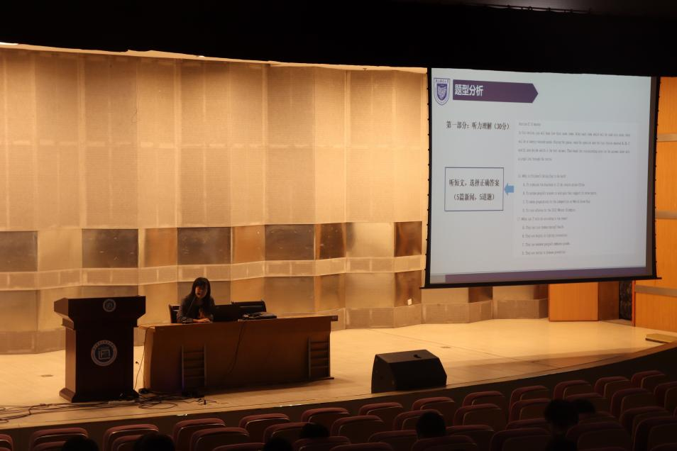 讲座伊始,洪洁老师从全国大学生英语竞赛的概况讲起:全国大学生英语竞赛旨在通过竞赛促进大学生英语水平的提高,激发广大学生学习英语的兴趣。接着她向同学们详细讲解了全国大学生英语竞赛的时间安排、报名流程以及历年获奖状况。最后,洪老师建议同学们积极报名、在报名之后多多练习,更好地备战全国大学生英语竞赛。