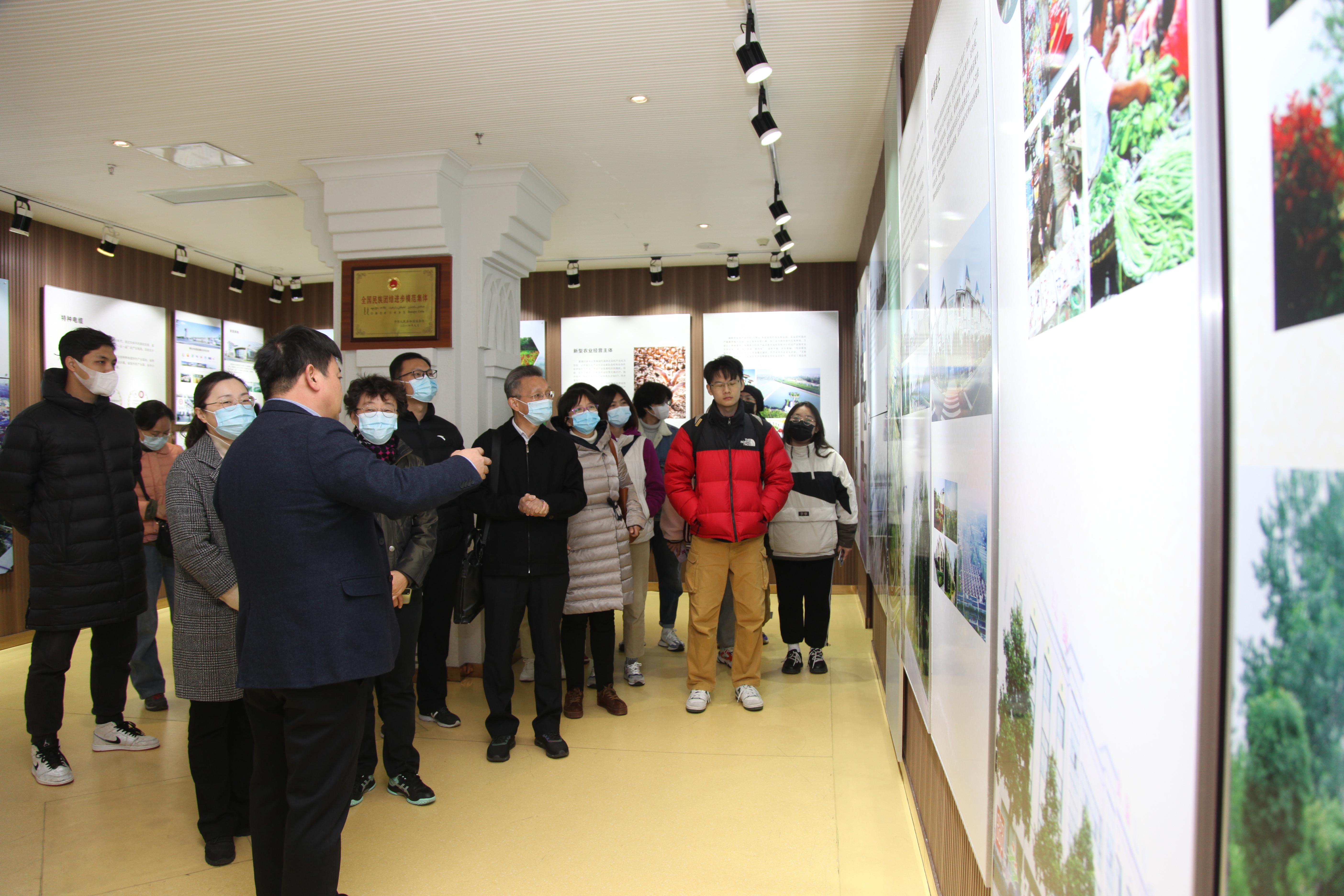 在菱塘回族乡文化宫中感受民族融合创新力。菱塘回族乡党委统战委员、民宗局局长吴庆才给大家详细介绍了“湖天新月展馆”和“乔登江院士事迹展览馆”。“湖天新月展馆”各版块内容形象生动地诠释了菱塘回族乡的发展历程和取得的巨大成就,大家纷纷盛赞菱塘日新月异的瞩目辉煌。乔登江院士的精神激励大家更加坚定初心和使命,厚植爱国主义情怀。