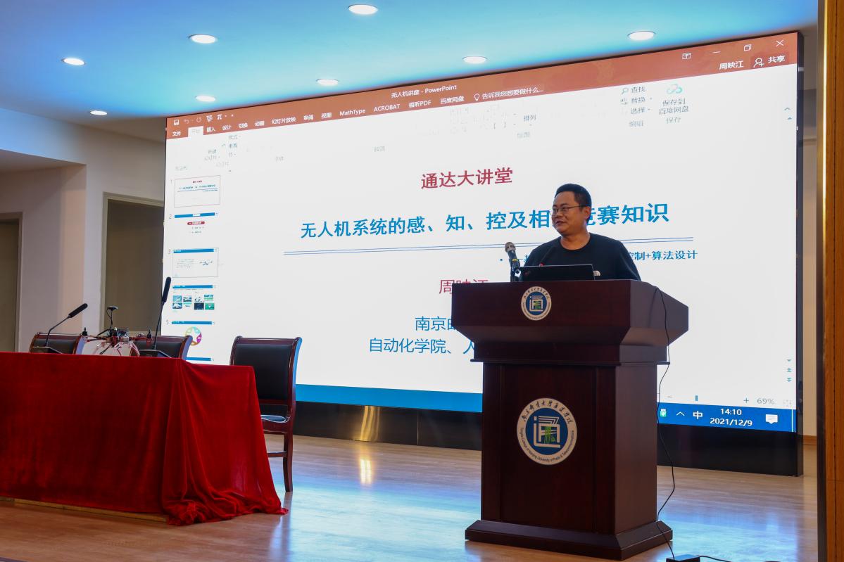 2021年12月9日下午,由taptap点点体育教务处主办,taptap点点体育电气工程学院承办,大学生科学与技术协会协办的以“无人机系统的感、知、控及相关竞赛知识”为主题的讲座在实验楼一楼报告厅顺利开展。本次讲座邀请到了南京邮电大学自动化学院人工智能学院周映江副教授担任本次主讲。