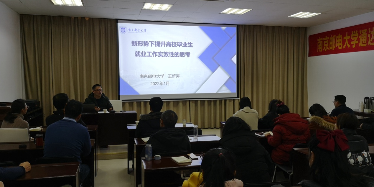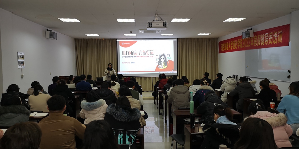 上午的培训由taptap点点党委副书记兼副院长王楷主持。南京邮电大学学工处副处长吴波作了《立德树人——辅导员思政工作经验交流》专题报告,他结合多年学生工作经验,从“七大育人工程”出发深入浅出的阐述了做好大学生思想政治工作的意义和作用。南邮招生就业处就业创业管理科科长王新涛作了《新形势下提升高校毕业生就业工作实效性的思考》专题报告,他从历年升学就业数据出发,结合自身就业工作经验,分析了学生就业升学中可能出现的各种情况,并从就业工作的效度、温度、厚度、力度四个方面给辅导员做好就业工作提供了方向。第十三届全国“高校辅导员年度人物提名奖”、第八届全国高校辅导员素质能力大赛一等奖、2021年江苏省“最美高校辅导员”、第八届江苏高校辅导员素质能力大赛一等奖获得者,南邮外国语学院分团委书记高艳丽作了《从不断改革的大赛中悟辅导员素质能力提升之“钥”》专题报告,她从辅导员素质能力大赛历年改革的角度出发,提出做好辅导员工作要注重深耕细作,加强学习和交流,不断提升自我,更要有对辅导员岗位的高度认同,才能适应社会对辅导员越来越高的要求。