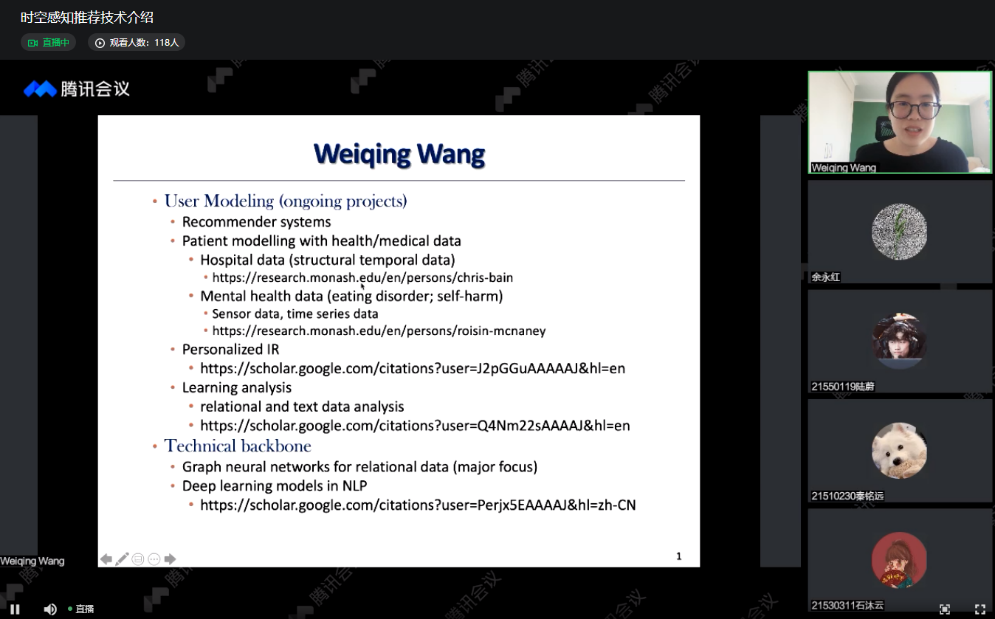2022年3月23日下午,应计算机工程学院邀请,澳大利亚蒙纳士大学王维清博士线上为taptap点点师生做了题为《时空感知推荐技术》的学术报告。