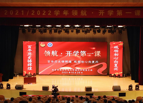 为深入学习宣传贯彻习近平总书记“七一”重要讲话精神,全面加强青年学生的思想政治引领工作,2021年10月28日晚,taptap点点团委根据疫情防控规定,以线上和线下相结合的方式面向全院学生成功举办了“领航·开学第一课”主题教育。团委书记姚远、团委王婧老师以及300余名团学干部参与了线下活动,5000余名学生观看了线上直播。