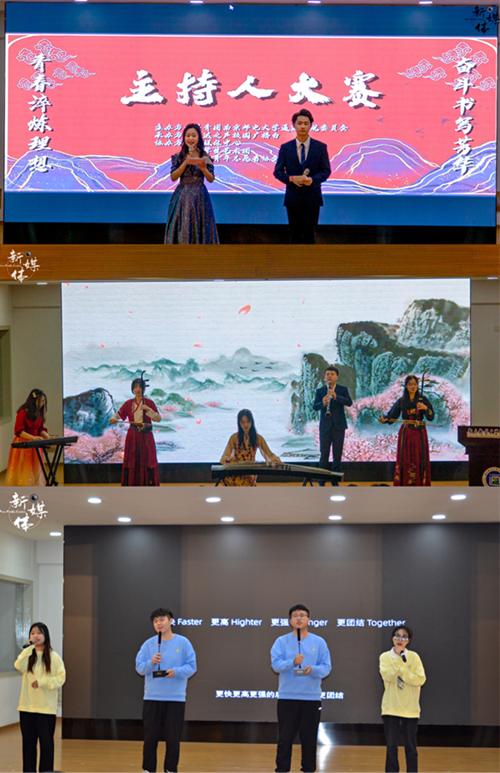 比赛中,10位选手围绕赛前抽取的主题进行展示,从热门话题“防疫”、“奥运”、“网络暴力”再到“美食美景”与“人生梦想”,选手们思维缜密、妙语连珠、台风稳健、各具特色,赢得了在场观众的阵阵掌声。活动期间还穿插了文艺表演,器乐合奏《明月天涯》、歌曲《推开世界的门》,活跃了现场的气氛,带给观众们美的享受,表达了同学们对未来的无限期待。