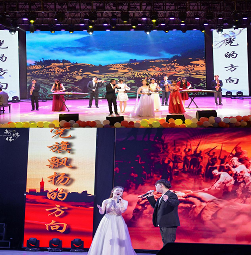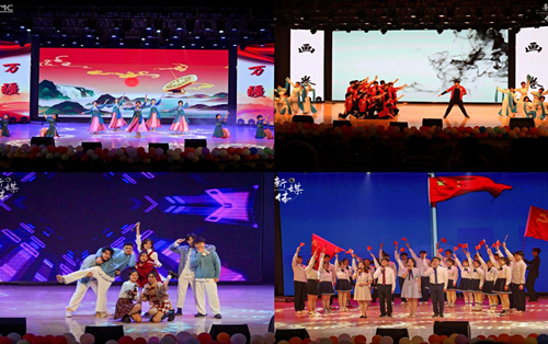 表演环节在大艺团舞团、街舞社和起灵舞蹈社共同带来的舞蹈《画卷》中开启。新媒体和青协带来的视频《疫去秋来,你好通达》,辅导员靳薇弘老师和大艺团器乐团的表演《光的方向》点燃了我们心中的热血,激励全院学生不忘初心,牢记使命,锤炼品质,砥砺奋斗。辅导员汤哲妍老师和薛际洲同学演唱的歌曲《党旗飘扬的方向》将中国共产党波澜壮阔的百年历史呈现在观众眼前;古典舞《万疆》轻盈优美,表达了taptap点点学生对祖国大好河山的赞美与热爱,新媒体的视频《四年》和朗诵《青春寄语》告诉大家,信仰对一个青年人是多么重要;晚会在歌曲《你好未来》与2021级新生辅导员的寄语声中落下了帷幕。