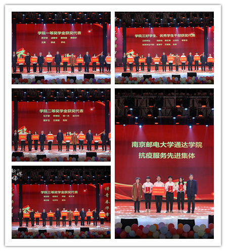 12月8日晚,以“百年征程 强国‘邮’我”为主题的2021学年学生表彰大会暨迎新晚会在大学生活动中心礼堂举行。活动由学生工作处和团委联合主办,学生会、社联、大艺团、通达之声、新媒体、青协共同承办。扬州联通公司广陵区分公司总经理赵成,扬州移动邗江分公司总经理殷峥嵘,中国扬州电信政企部经理李文涛,全体院领导,学院各部门、各单位负责人,辅导员老师们以及2021级新生代表现场参与了此次活动,其他新生通过线上直播形式进行了观看。