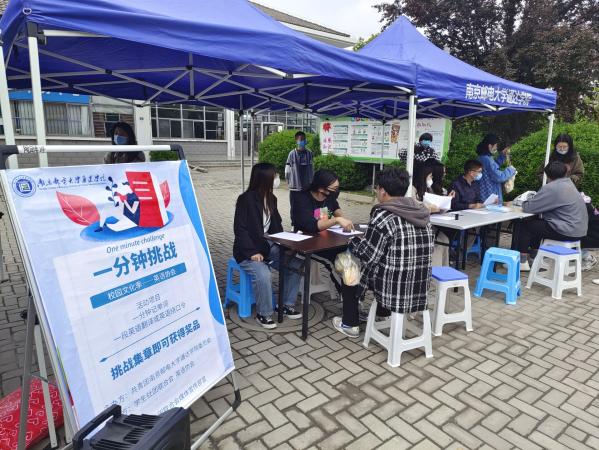 英语协会向同学们发起“一分钟挑战”,吸引了一大批热爱英语学习的同学加入其中。