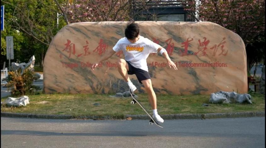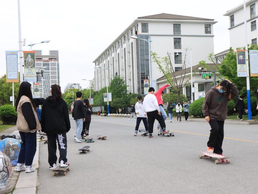极影滑板社的成员用一个又一个富有难度的动作展现出滑板的魅力,让想尝试滑板运动的同学,在一次又一次的体验中感受到青春的激情。