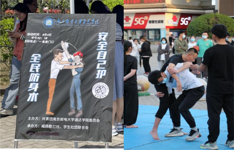 威扬散打社的防身术教学活动,现场教授同学们实用的防身小技巧,让大家在面对险情时能更好的保护自己。