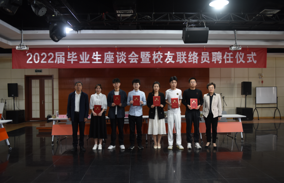 校友联络员聘任仪式环节,院党委副书记兼副院长王楷宣读了《关于聘请李书凯等92位同学为2022届校友联络员的决定》。商学院2018级市场营销专业的王丽君同学代表92位校友联络员发言,她表示,2022届校友联络员必将不负母校重托,持续关注母校发展,搭建沟通桥梁,全力支持校友工作,为校友工作贡献自己一份力量。院长王国平、党委书记朱清为6位校友联络员代表颁发聘书。