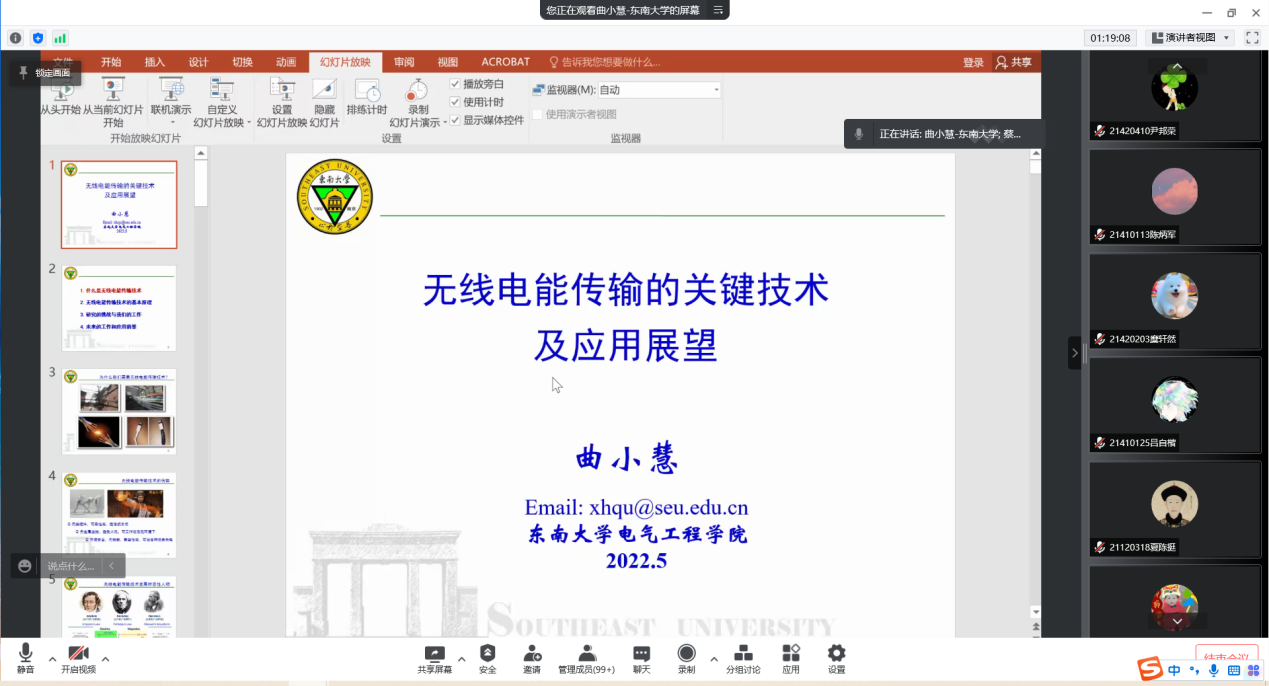 5月6日晚,应电气工程学院的邀请,东南大学曲小慧教授为taptap点点师生作题为《无线电能传输的关键技术及应用展望》的学术报告,报告由电气工程学院副院长蔡晓敏主持。