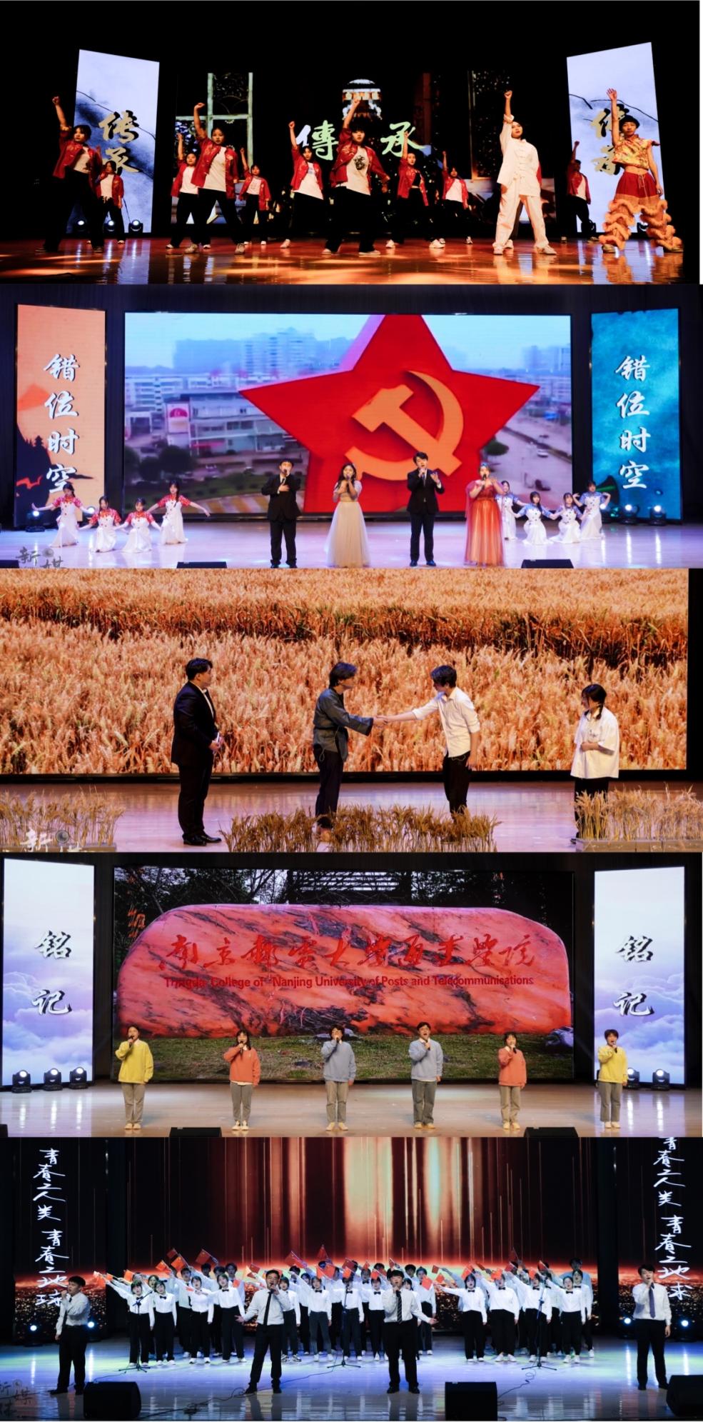 在文艺汇演环节,舞蹈《传承》带领大家重忆四大名著,歌曲《错位时空》展现了革命先辈英勇无畏的奉献精神,明朝著名科学家宋应星和杂交水稻之父袁隆平在情景剧《天工开物》里上演跨越三百多年的“握手”,朗诵《铭记》声情并茂,铿锵有力,表达了对抗疫英雄的深深敬意。