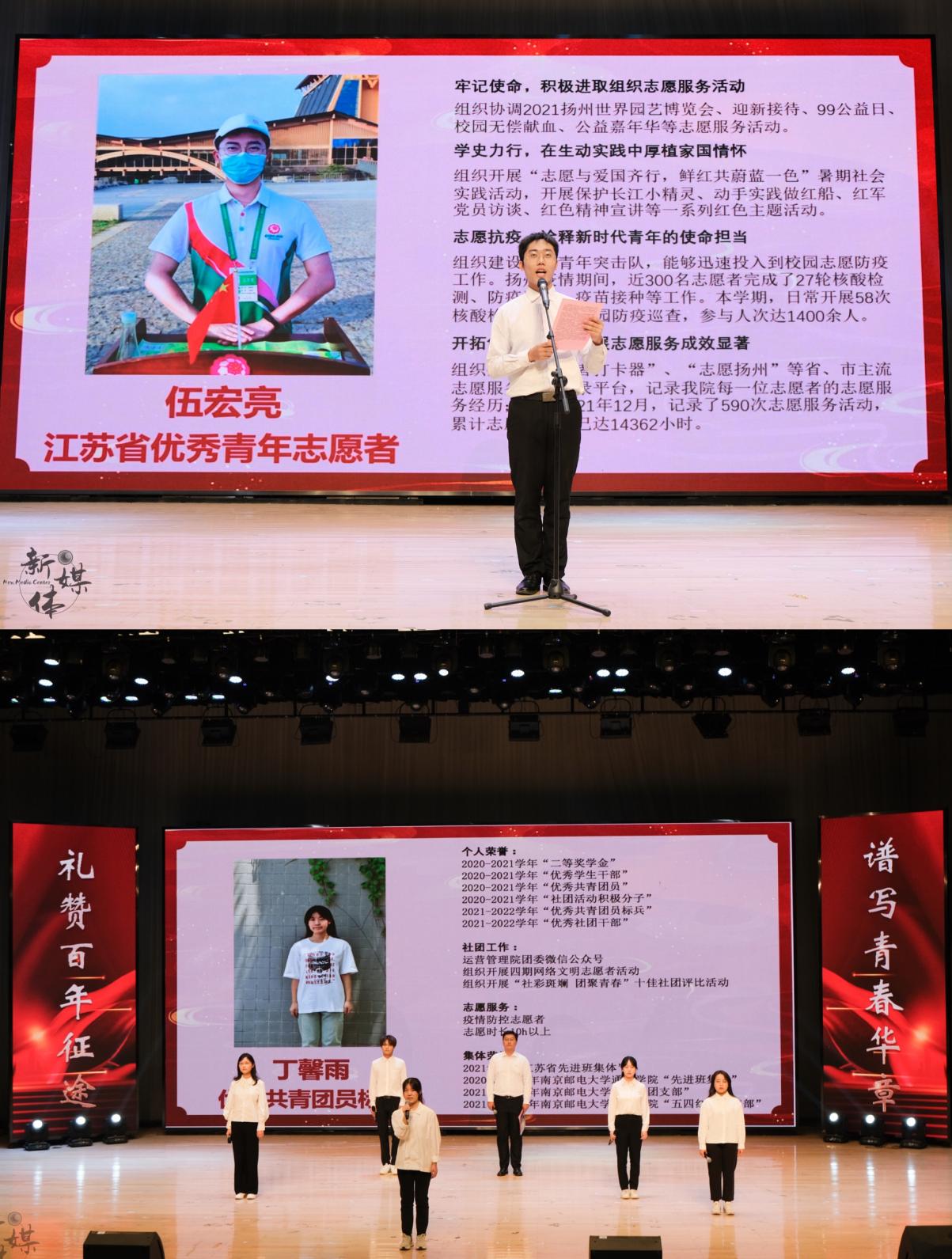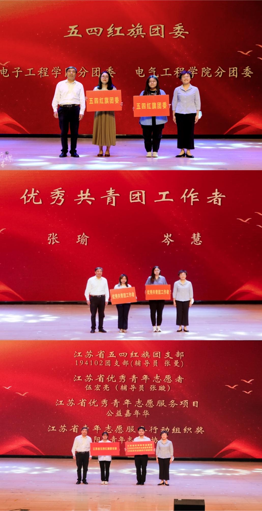 除此以外,今年taptap点点还有48名团员,8个团支部在南邮的“五四”评优中获得了表彰,194102团支部荣获“江苏省五四红旗团支部”称号,taptap点点青协荣获“江苏省青年志愿服务行动组织奖”,公益嘉年华项目荣获“江苏省优秀青年志愿服务项目”,19级物联网工程(嵌入式培养)专业学生荣获“江苏省优秀青年志愿者”,院领导为上述受表彰的先进集体和个人代表颁奖。优秀学生代表依次上台发言,向全体师生彰显榜样力量,绽放青春风采。