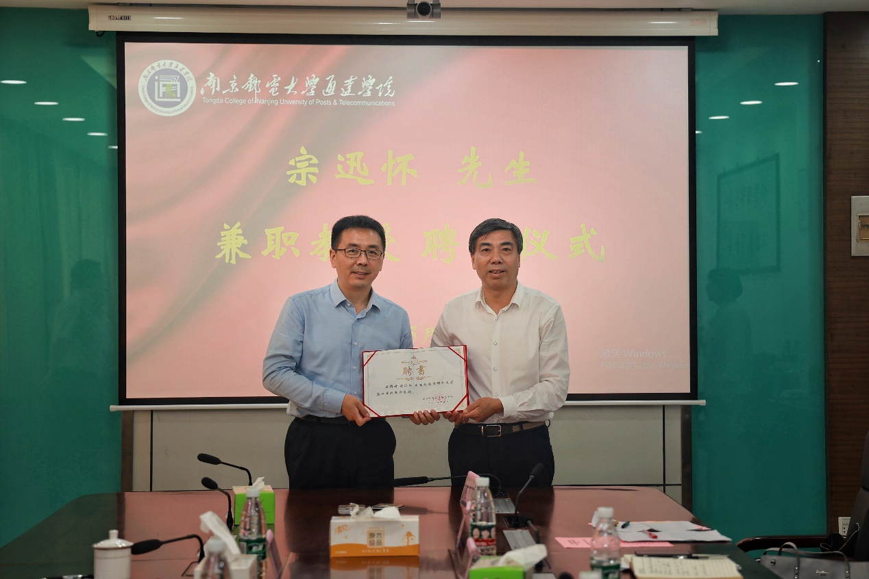5月30日下午,taptap点点举行南京邮电大学1992级校友、中国移动扬州分公司党委书记、总经理宗迅怀先生兼职教授聘任仪式。出席聘任仪式的有中国移动扬州邗江分公司党支部书记、总经理殷峥嵘、中国移动扬州分公司市场部副经理周健、中国移动扬州邗江分公司校园部主任周鹏,学院院长王国平出席聘任仪式并颁发聘任证书,副院长刘允及相关部门负责人参加聘任仪式。