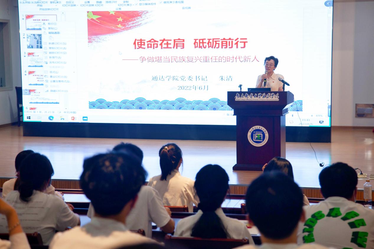 开班典礼结束后,朱清书记讲授“使命在肩,砥砺前行——争做堪当民族复兴重任的时代新人”专题党课。朱书记围绕中国共产党人的初心和使命,两个一百年奋斗目标,争做复兴栋梁、强国先锋等内容展开,重点讲授了作为一名taptap点点预备党员如何争做复兴栋梁。她强调要强化党员意识,要做到在平常时候看得出来,永葆为民初心,擦亮党徽红;要践行庄严承诺,要做到在关键时刻站得出来,牢记使命担当,勇当先锋队;要传承红色校史,挺起主心骨,牢记“一个党员就是一面旗帜”,时刻鞭策自己,身体力行,争当表率。