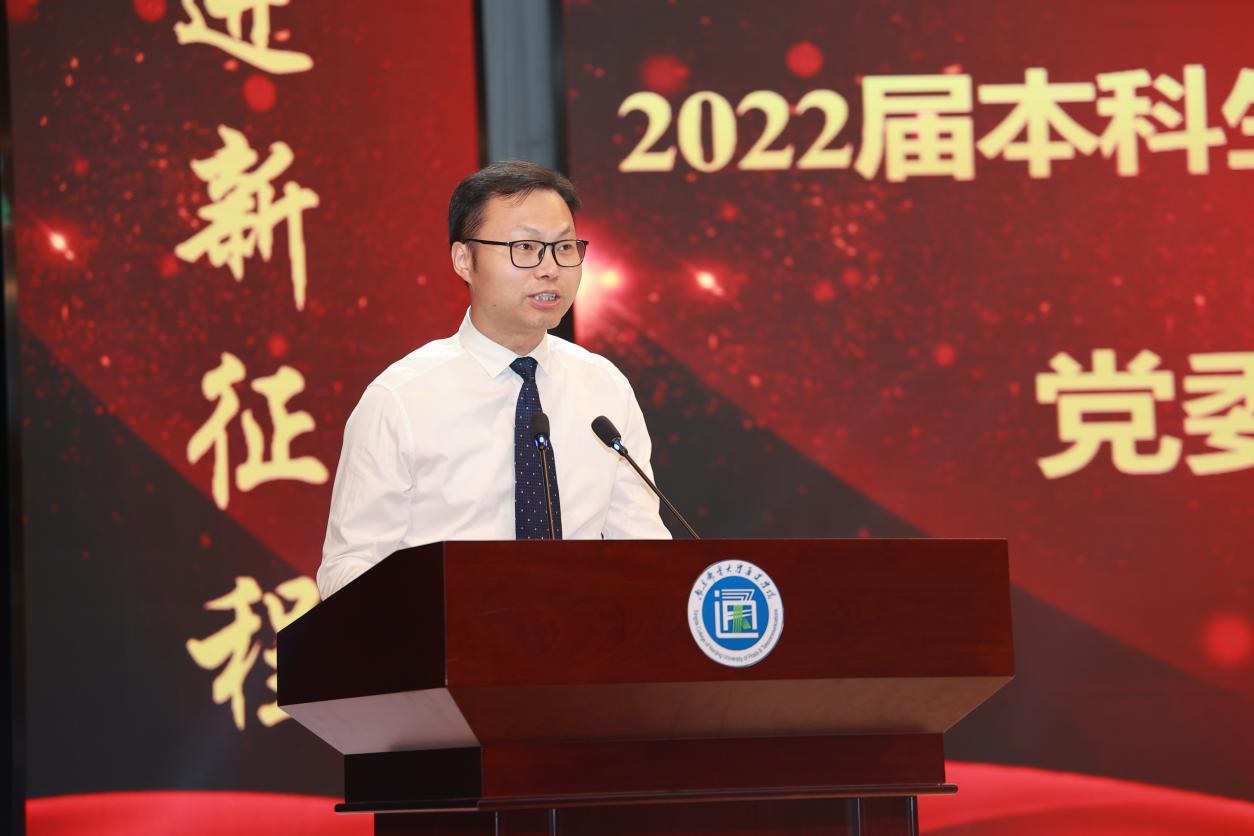 学院副院长刘允老师宣读优秀毕业生表彰决定。典礼上,孙校长和全体院领导为2022届优秀毕业生代表颁发荣誉证书。