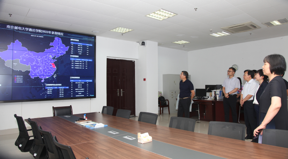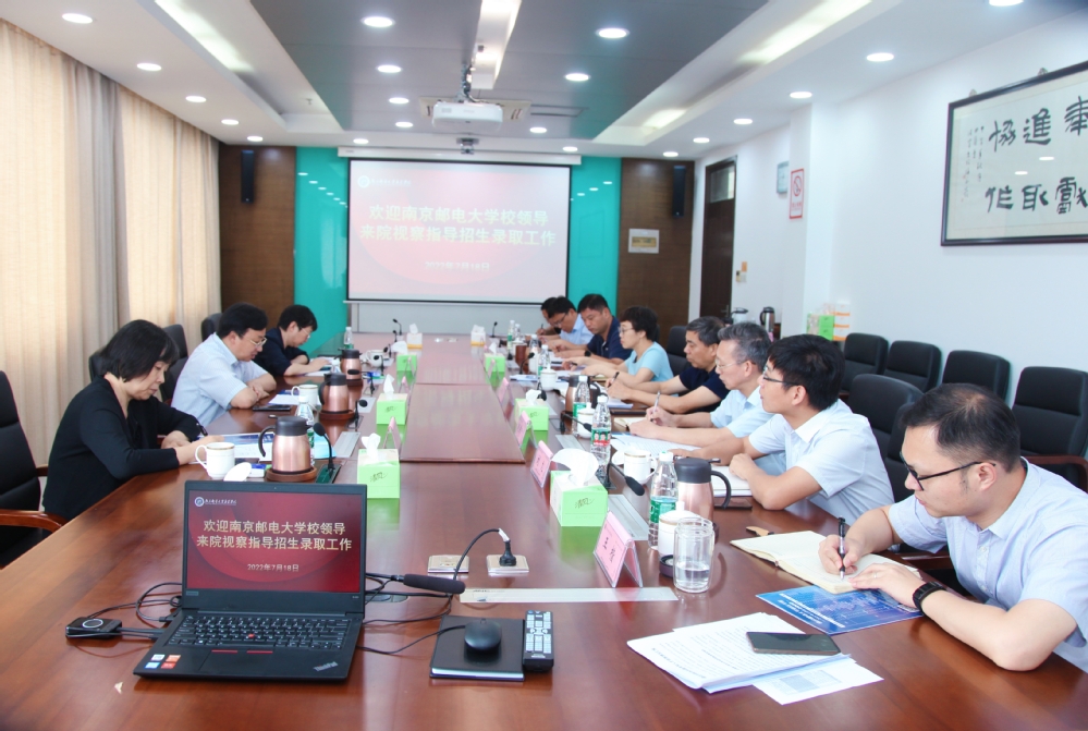 7月18日上午,正值我省本科批次投档录取之际,南京邮电大学党委书记刘陈,南京邮电大学校长、taptap点点体育理事长叶美兰,南京邮电大学党委常委、副校长孙力娟冒着酷暑来到taptap点点视察指导招生录取工作,听取学院工作汇报。院党政领导班子全体成员参加汇报。