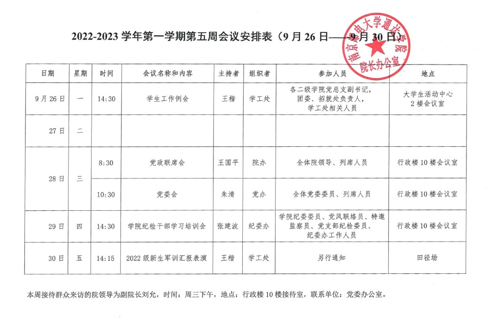 2022-2023学年第一学期第五周会议安排表