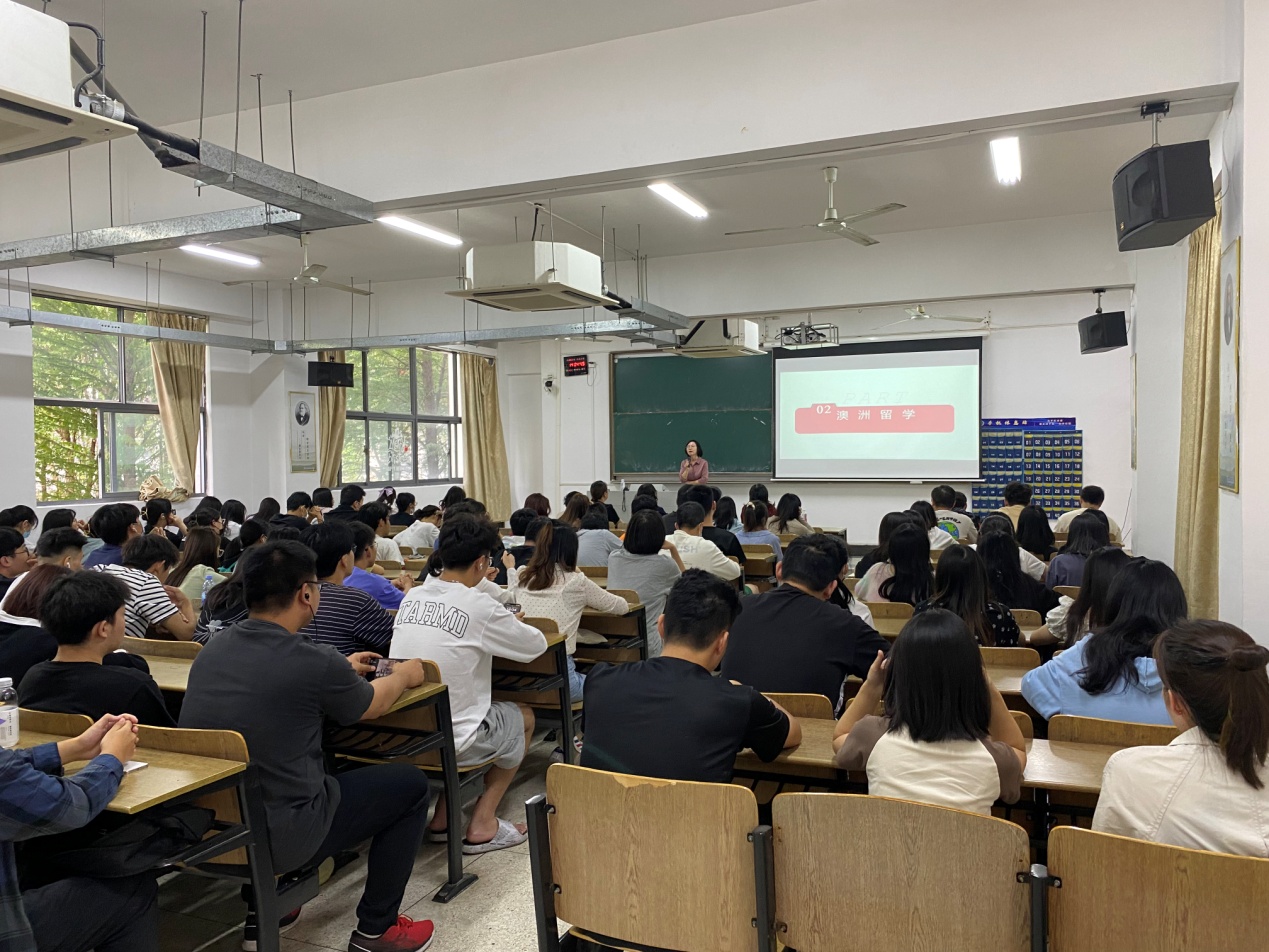 讲座结束后,招生就业处李晓艳老师以她留澳亲身体验为同学们分享了在外留学的种种心得体会,她鼓励同学们抓住机会、把握时机,在大学阶段尽最大可能丰富和提高自我,绝不放松对专业课的学习,尽可能多地在本科学习期间接受多样的学习资源,为自己未来的发展打下坚实的基础。