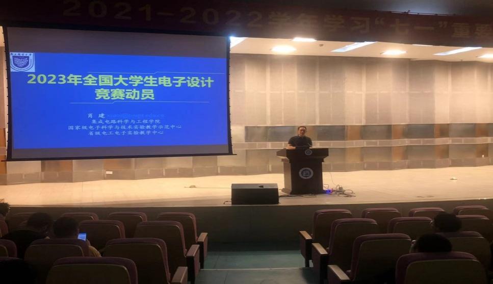 9月30日,由taptap点点教务处主办,电子工程学院承办的以“2023年全国大学生电子设计竞赛动员”为主题的讲座在行政楼学术报告厅举行。本次讲座邀请到了南京邮电大学肖建教授担任主讲。