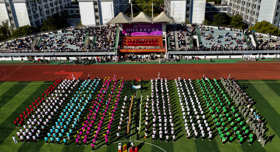 入场仪式上,气球方阵、红旗方阵、龙狮团方阵、通信工程学院方阵、电子工程学院方阵、计算机工程学院方阵、电气工程学院方阵商学院方阵、教师方阵等代表队的师生身着统一服装,迈着整齐的步伐,喊着响亮的口号,依次走入赛场,走过看台。运动会恰逢党的二十大胜利召开之际,在方阵表演中,师生们用歌声、用舞蹈、用口号、用造型,充分表达对党的热爱与忠诚,展示在新征程上奋发拼搏的勇气和自信。