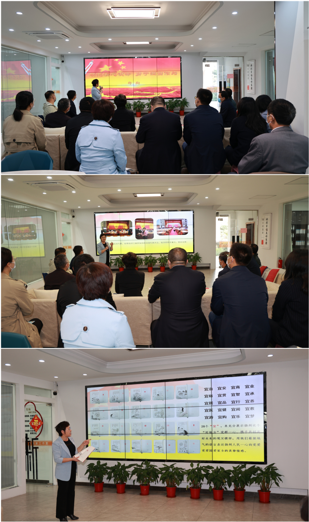 步入文昌花园社区党群服务中心大厅,郑翔以《牢记初心使命 勇于担当作为》为题给大家讲党课,传达党的二十大精神,分享她的认识与体会。郑翔深情地讲道,“党的二十大开幕式,当雄壮的中华人民共和国国歌响彻人民大会堂,我不禁泪湿双目。作为二十大代表,深感责任重大,使命光荣”。郑翔说,习近平总书记的报告饱含了浓浓的为民情怀,聆听了以后感觉到非常振奋。特别是有一句话印象深刻,为民造福是立党为公,执政为民的本质要求,必须坚持在发展中保障和改善民生。作为基层工作者,一定坚守为民服务的信念,时时刻刻把群众的需求揣在心里,把惠民政策落实到位,在实践中履行老百姓说好才是真的好的承诺。郑翔还深情地讲述了将一份特殊“礼物”带到党的二十大会上的故事。二十大召开前夕,社区居民们自发创作了《宜见“好地方”》手工线装书,宜居、宜养、宜招、宜品、宜梦......书中用20个“宜”总结了“好地方”的新内涵,并配以图画和诗作,既倾吐了百姓的幸福心声,也充分彰显了扬州这个“好地方”,党群一心,携手共创美好未来的现实模样,用他们最接地气的语言表达扬州人民一心向党爱党爱国爱家乡的真挚情感。这件“礼物”引发了与会代表的强烈共鸣。