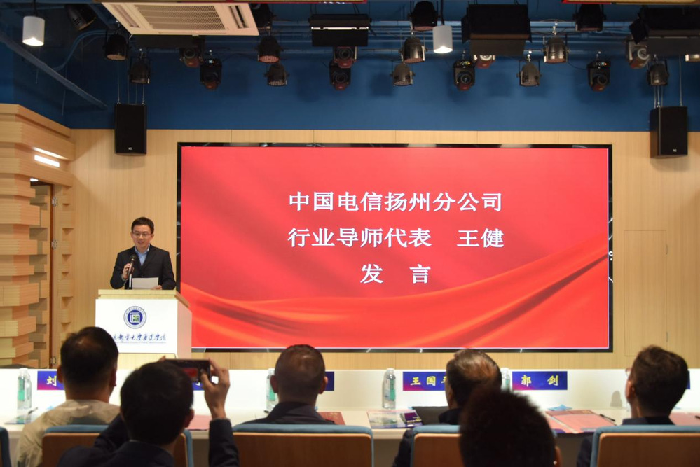 活动伊始,学院院长王国平致欢迎辞,他简要介绍了学院情况,并对近年来取得的双创成绩表示了充分肯定。他强调,创客空间是通达学子实践创新的重要平台,对应用型人才培养具有重要现实意义。扬州电信党委书记、总经理郭剑致辞中表示电信高度重视科技创新、科技自强的高校人才培养战略,将持续加强与学院的交流沟通,共同培养优秀人才。随后,王国平院长和郭剑总经理为扬州电信创客空间揭牌,王国平院长为行业教授颁发聘书,王国平院长和赵洪牛副院长为行业导师颁发聘书。