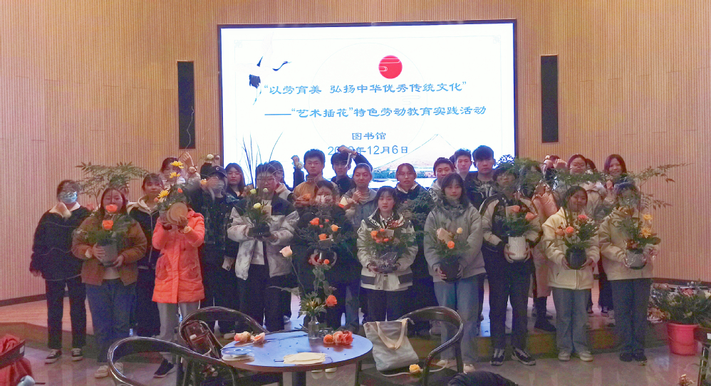 为将中华优秀传统文化融入劳动教育全过程,12月6日下午,图书馆在史书阁多功能厅开展“艺术插花”特色劳动教育实践活动。活动邀请了扬州市职业大学园林园艺学院居萍教授,为同学们带来一场体验式、开放式的课堂教学。活动由图书馆馆长许霞主持。