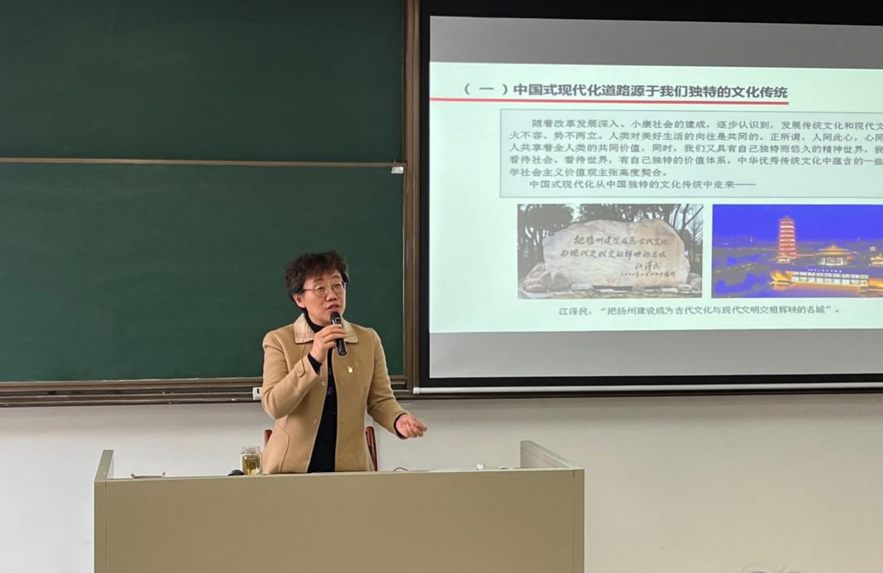 专题讲座中,朱书记从“为什么只有走中国式现代化道路才能推进中华民族伟大复兴?”“中国式现代化具有哪些重要特征?”“新时代青年大学生如何为中国式现代化做好准备?”三个方面进行讲解。授课在理论阐释上高屋建瓴,在语言表述上深入浅出,使同学们加深了对中国式现代化的认识和理解,也进一步明确了自身努力的方向。