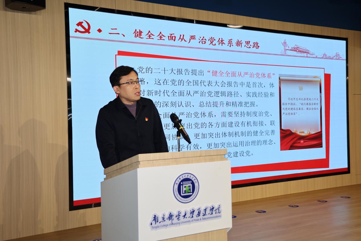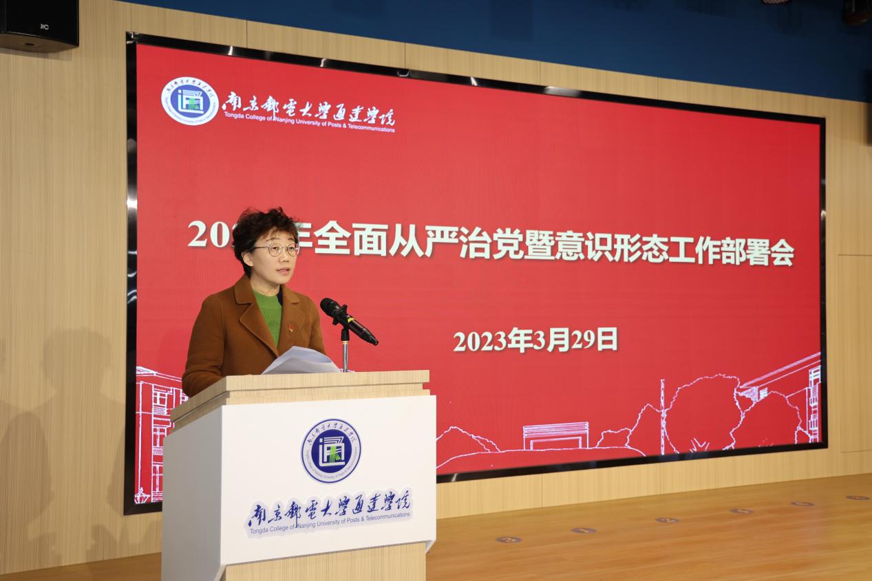 学院党委书记朱清围绕深入学习贯彻党的二十大精神,全面贯彻落实上级关于全面从严治党工作与意识形态工作的部署作了工作报告。她指出,本次会议的主要任务是以习近平新时代中国特色社会主义思想为指导,深入学习贯彻落实党的二十大精神和党中央关于全面从严治党的重大部署,传达上级有关全面从严治党、意识形态工作的会议与文件精神,对学院2023年全面从严治党和意识形态工作作出部署安排。她从“把握全面从严治党新部署,发扬彻底的自我革命精神,推进管党治党不断取得新成效”“聚焦校内巡察反馈问题,狠抓整改落实,做好巡察‘后半篇文章’”“严格落实意识形态责任制,坚持常抓不懈,牢牢把握意识形态工作主动权”等三方面,部署了2023年学院全面从严治党工作和意识形态工作的重点任务,对落细落实全面从严治党工作和意识形态工作责任提出了具体要求。