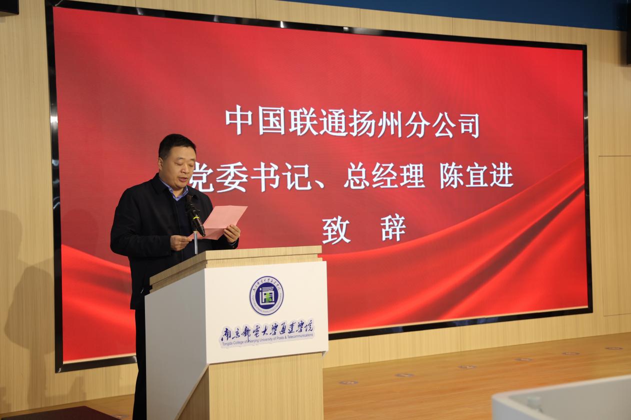 活动伊始,学院院长王国平致欢迎辞,他简要介绍了学院情况,并对近年来取得的双创成绩表示了充分肯定。他强调,共建创客空间是taptap点点和扬州联通深度合作的里程碑,开辟了创新土壤,搭建了创业平台,架设了合作桥梁。扬州联通分公司党委书记、总经理陈宜进致辞中表示扬州联通高度重视大学生创新创业,将持续加强与学院的交流沟通,共同培养优秀的应用型、创新型人才。随后,王国平院长和陈宜进总经理为扬州联通创客空间揭牌,王国平院长、赵洪牛副院长为行业教授、导师颁发聘书。