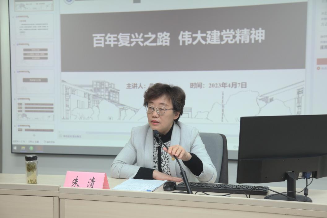 开班仪式结束后,院党委书记朱清以《百年复兴之路 伟大建党精神》为主题给学员们讲了精彩的一课。朱书记带领大家回顾了中共一大到二十大党的百年奋斗历程,与大家一起学习了党的二十大报告中的新观点、新论断、新思想,而后着重介绍了伟大建党精神和中国共产党人精神谱系,一位位平凡而伟大的人物,一个个生动而真挚的故事,就像微光汇聚成星河,闪耀在每位学员心中。最后她 勉励全体党务干部弘扬伟大建党精神,牢记“三个务必”,增强素质本领,发挥“头雁”作用,深入学习贯彻党的二十大精神,进一步强化基层党组织的政治功能,全面提高组织力,充分发挥党支部战斗堡垒作用,为立德树人提供坚强保障。