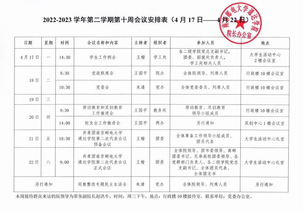 2022-2023学年第二学期第十周会议安排表