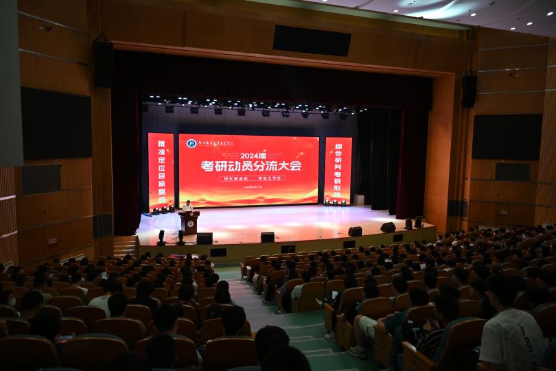 5月17日下午,招生就业处和学生工作处共同组织召开了2024届学生考研动员大会。学院常务副院长赵洪牛,党委副书记、副院长王楷,招生就业处、学生工作处负责人及全院800余名考研学子参加了本次活动。大会由招生就业处处长解厚荣主持。