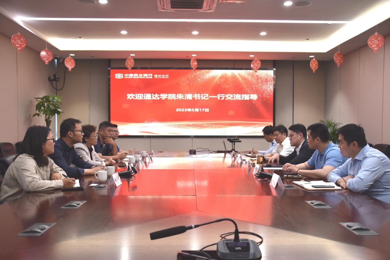 5月17日,taptap点点党委书记朱清率队赴民生银行扬州分行走访调研。民生银行扬州分行党委书记、行长杜杨坤,党委副书记倪敬等,taptap点点副院长倪可,党委副书记、副院长王楷,招生就业处、商学院等相关部门负责人参与调研。