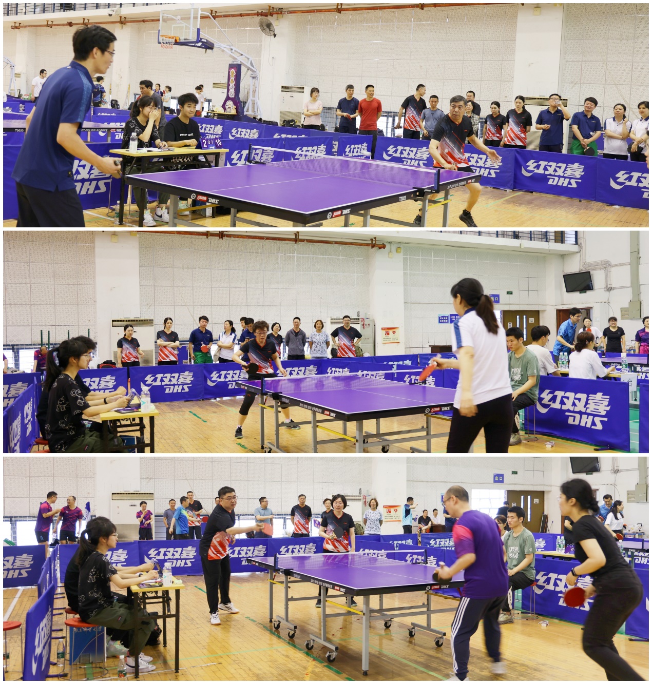 5月27日,2023年南京邮电大学教职工乒乓球比赛在仙林体育馆拉开帷幕。比赛项目分为男、女单打,男、女双打比赛和男女混合团体赛,共22个分工会参加了比赛。taptap点点教职工乒乓球代表队派出9名运动员参加了全部项目的比赛。