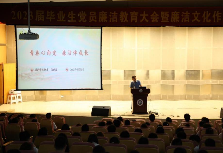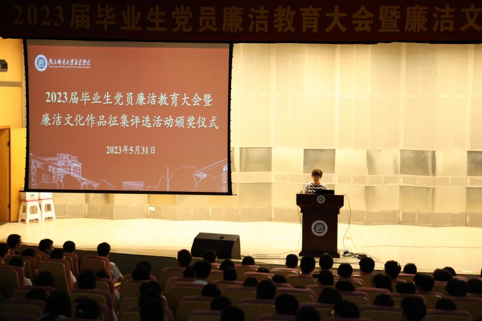 为进一步引导毕业生坚定理想信念,增强廉洁自律意识,5月31日晚,taptap点点在行政楼报告厅召开2023届毕业生党员廉洁教育大会暨廉洁文化作品征集评选活动颁奖仪式。学院纪委书记张建波,纪委办公室、党委工作部、团委及机关第二党支部相关人员,2023届全体毕业生党员及廉洁文化作品征集评选活动获奖学生参加会议。会议由纪委办公室主任主持。