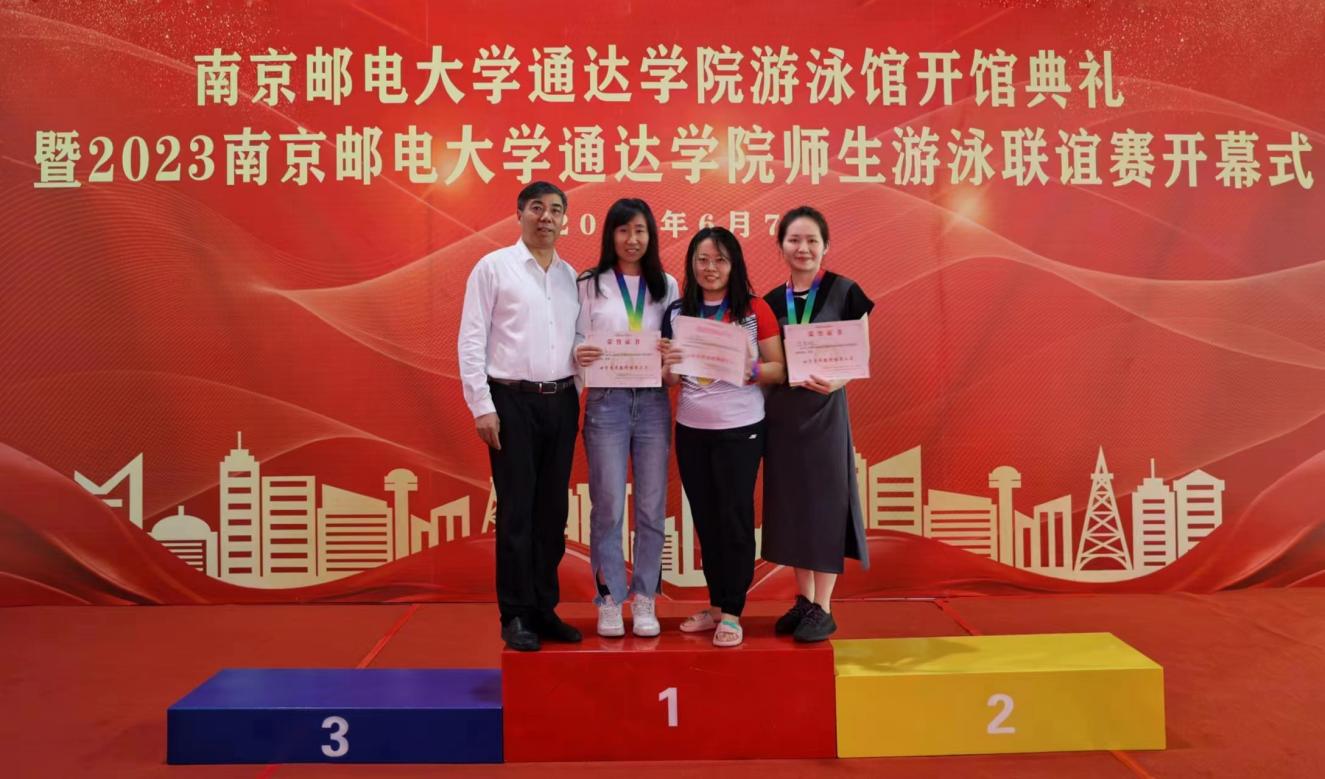在首届师生游泳联谊赛中,计算机工程学院的于怀博同学和商学院陈宏同学获得学生组男、女子冠军,杨寅老师获得男子教青组冠军,任建蕊老师获得女子教青组冠军,杨俊、高海燕分获男、女子教中组冠军,计算机工程学院获得团体赛冠军。