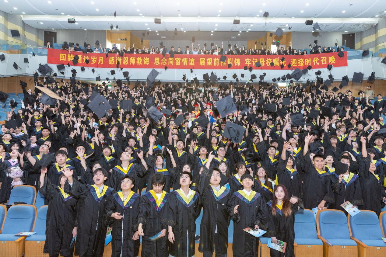 毕业典礼现场,全体毕业生庄严宣誓:“感念母校,勿忘师恩;追求理想,勇攀高峰;为实现中华民族伟大复兴的中国梦努力奋斗!”