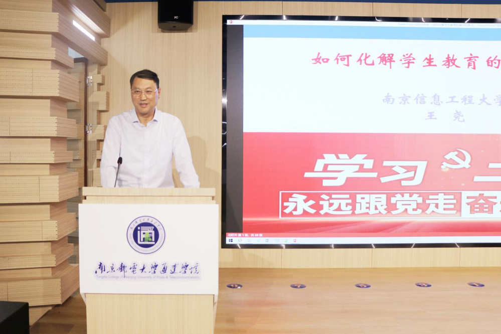 10月9日下午,南京信息工程大学原党委副书记、副校长,江苏省高校辅导员研究会副理事长,中国高教学会学生工作研究会副理事长王尧教授来taptap点点作“如何化解学生教育的痛点与难点”专题报告。院长王国平,党委副书记兼副院长王楷,学生工作处、招生就业处、团委、二级学院党总支负责人及全体辅导员现场聆听报告。报告会由院长王国平主持。