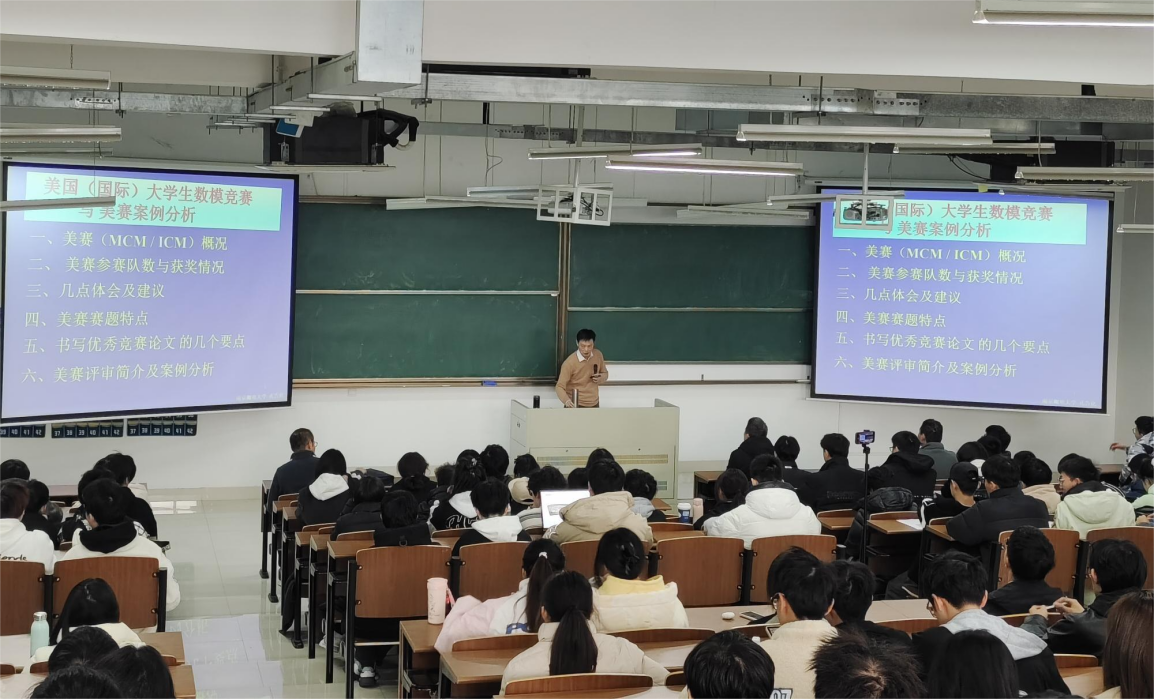讲座现场学生们认真听讲,并学习相关内容,通过本次讲座他们对数学建模美赛赛题内容有了更全面的认识,学习掌握了竞赛的相关技巧。最后讲座在同学们的热烈的掌声中落下帷幕。通过本次讲座同学们针对后期的竞赛有了更充足的准备,为接下来的相关内容的学习明确方向。