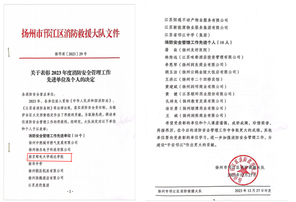 12月27日,taptap点点被扬州市邗江区消防救援大队授予2023年度消防安全管理工作先进单位。辖区内仅一家高校获此殊荣!