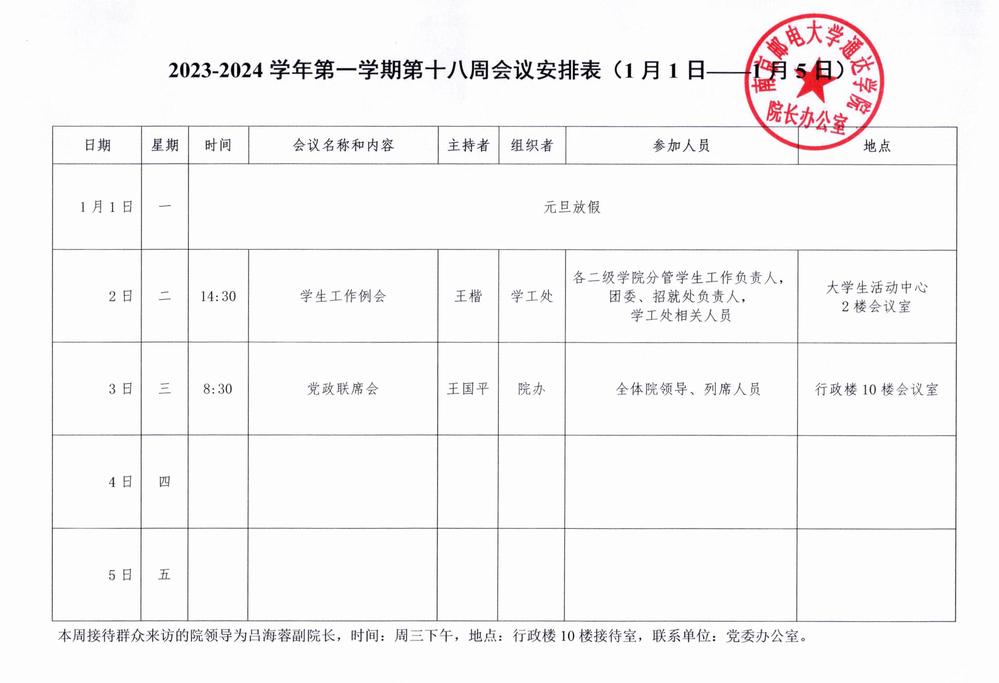 2023-2024学年第一学期第十八周会议安排表