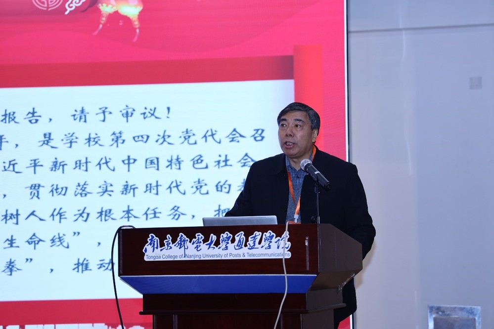 党委书记赵允玉代表学院党政热烈祝贺大会的召开。她指出,在全体教职工的共同努力下,学院2023年各项成果喜人,捷报频传。2023年,电气工程及其自动化专业获批江苏省产教融合型品牌专业,学院连续两年获批省产教融合型品牌专业,是省内独立学院唯一;在中国机器人大赛暨RoboCup机器人世界杯中国赛上,获得国家级一等奖、三等奖的历史最好成绩;获得全国大学生电子设计竞赛国家级二等奖1项、省级二等奖5项;学院再获省高校毕业生就业工作量化督导A等高校,连续两年获得此项荣誉。学院连续三年荣获南京邮电大学校园文化建设优秀成果一等奖,理论学习中心组再获南京邮电大学党委理论学习中心组示范点。首获扬州市首批“优质兵员储备基地”,首次获评“扬州市文明校园”、江苏省“年度节水型高校”、“江苏省绿色学校(高校)”等称号。对于如何推进“两代会”建设,她提出三点期望:提高政治站位,忠实履行代表职责;完善制度建设,积极推进民主管理;争当育人楷模,充分发挥示范作用。她强调,要深入学习贯彻习近平新时代中国特色社会主义思想,按照校第四次党代会确定的目标和要求,在学院高质量发展的新征程中书写新的辉煌篇章。