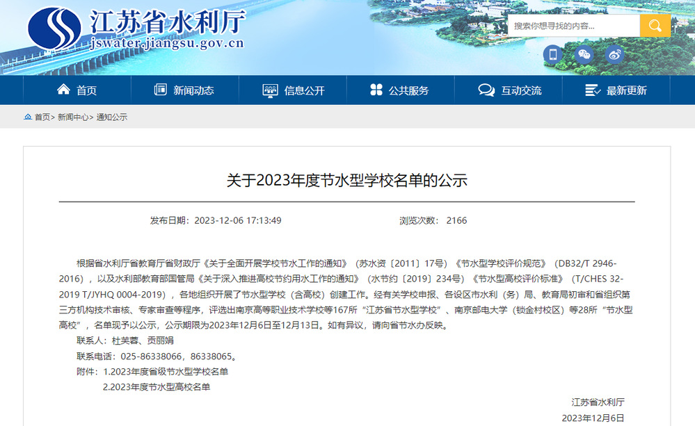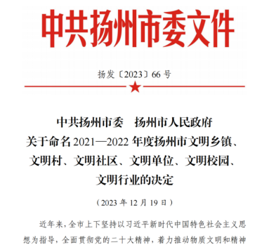 9.校园文明建设再结新果:连续三年荣获南京邮电大学校园文化建设优秀成果一等奖。获评“扬州市文明校园”荣誉称号。承办扬州市“全国城市节约用水宣传周”启动仪式,学院首次获评江苏省“2023年度节水型高校”、“江苏省绿色学校(高校)”称号。