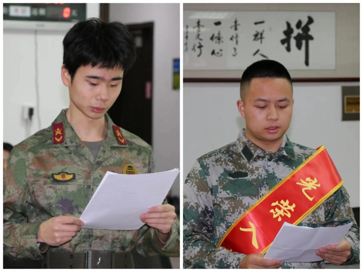 退伍复学学生代表刘超尘、入伍新兵代表危元权发言